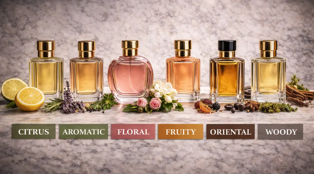 Os cítricos e os florais aquáticos são as famílias mais universalmente bem recebidas — funcionam em diferentes tipos de pele, climas e contextos. Para quem está começando na perfumaria e não quer correr riscos, essas são as famílias mais seguras como ponto de partida.